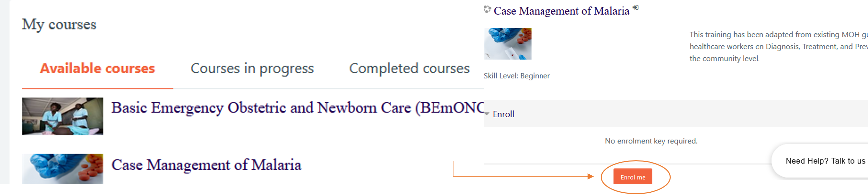 - Click on the course name to self-enroll to the course Scroll down to the“Enroll me” button and click on it.