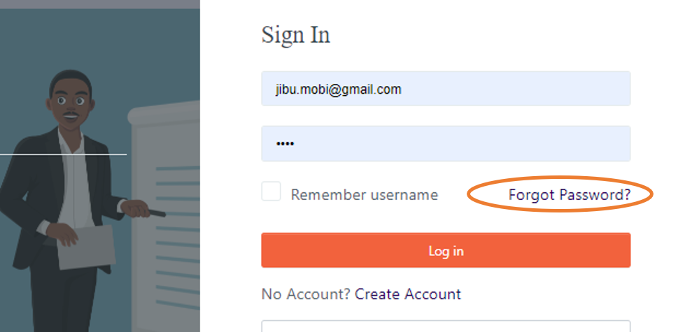 - Click on the “Forgot password” button